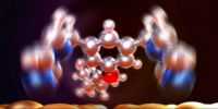 22. Artistic representation of a proposed one-direction walking molecule on a metallic surface.